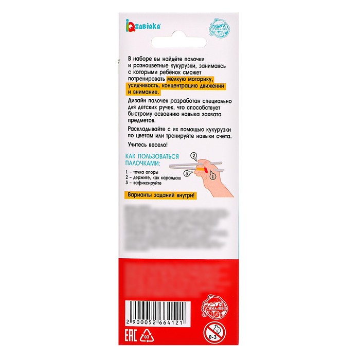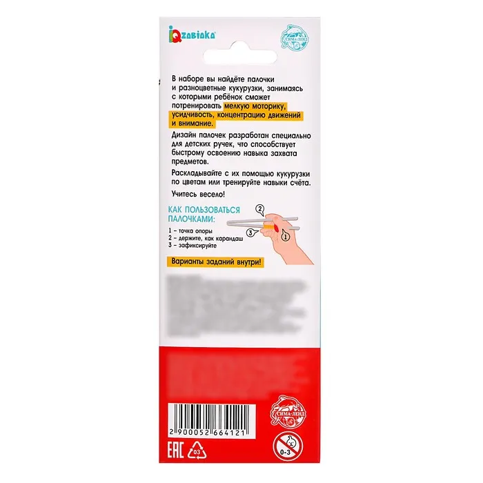 Сортер «Палочки и кукурузки» поможет в развитии моторики, внимания, изучении цветов и счёта.