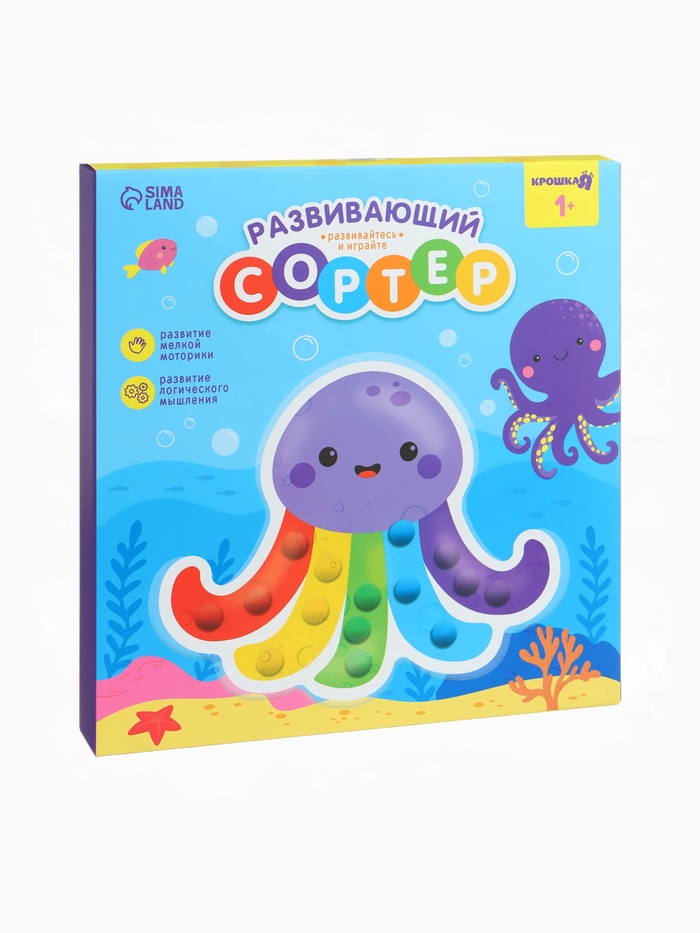 Сортер-сквиш «Осьминог» — яркая сенсорная игрушка для малышей, которая помогает ребёнку изучать цвета и формы в игровой форме. Мягкие лепестки приятно нажимаются, а шарики внутри делают игру увлекательной и наглядной.