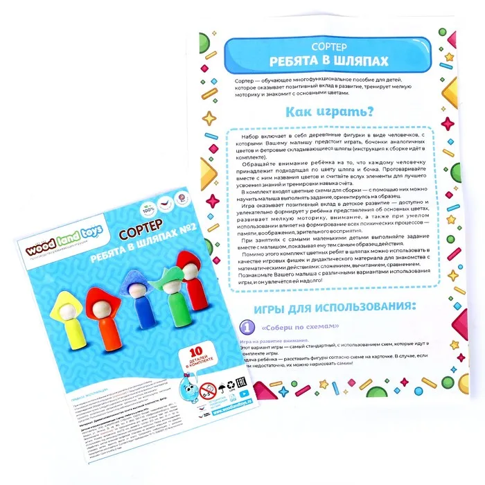 Сортер «Ребята в шляпках», 5 цветов — Характеристики