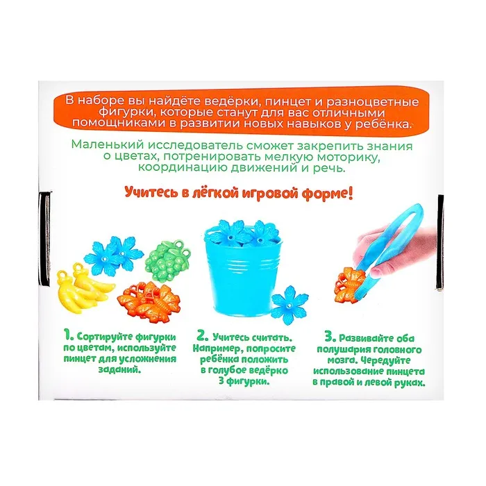 Набор-сортер «Цветные ведёрки» рекомендован детям старше 3 лет.