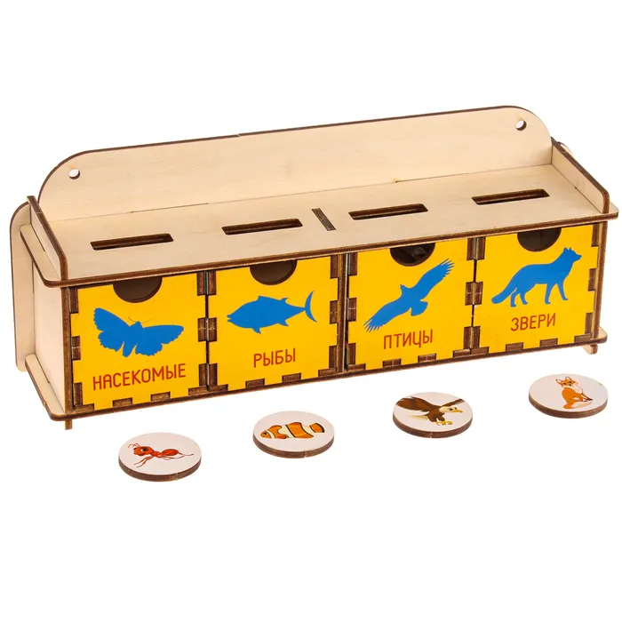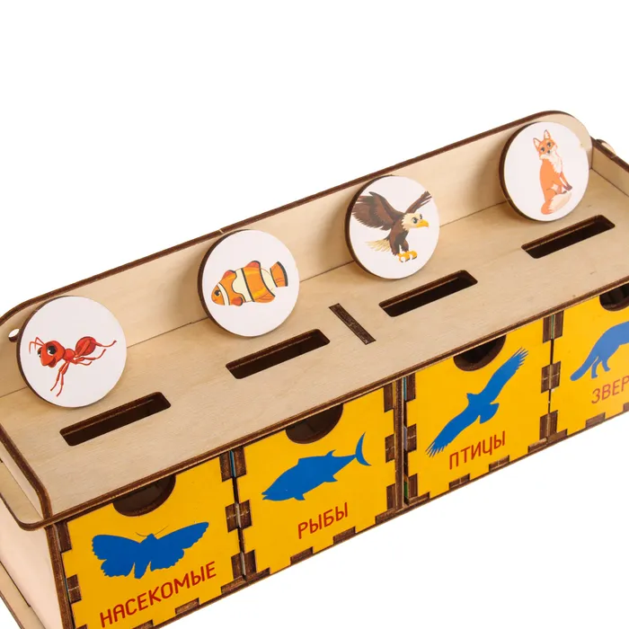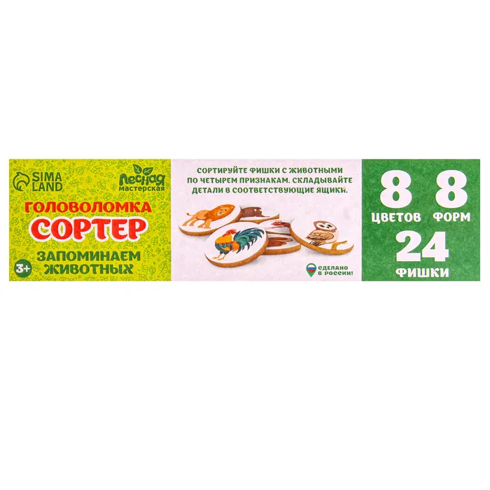 Деревянный сортер «Запоминаем животных» — это увлекательная настольная игра для детей от 3 лет, которая помогает изучать окружающий мир, развивать внимание, логику и мелкую моторику. В комплекте элементы в виде животных, которые нужно правильно разместить на игровой панели.