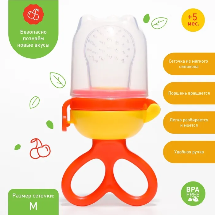 Соска для прикорма с силиконовой сеточкой, вращающийся поршень, оранжевая — Характеристики