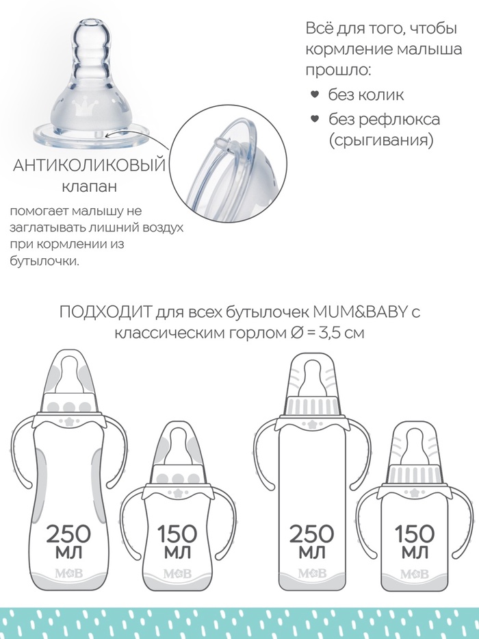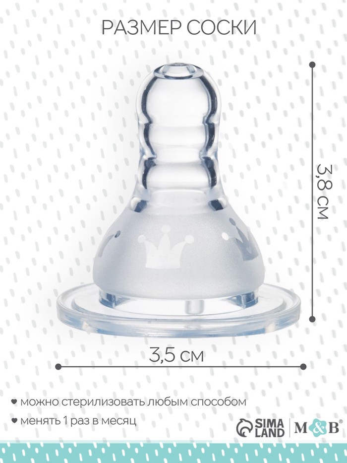 Соска на бутылочку, антиколиковая,+3 мес., M&B «Корона» — Характеристики