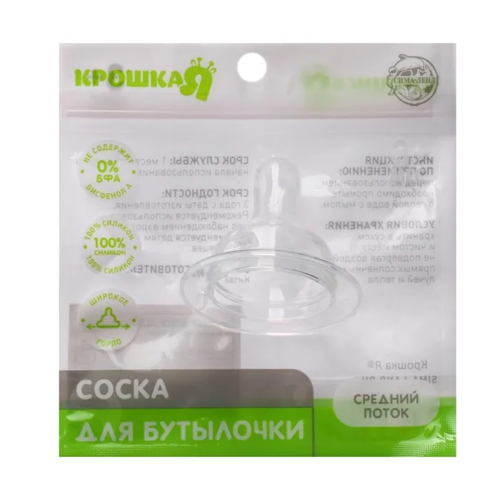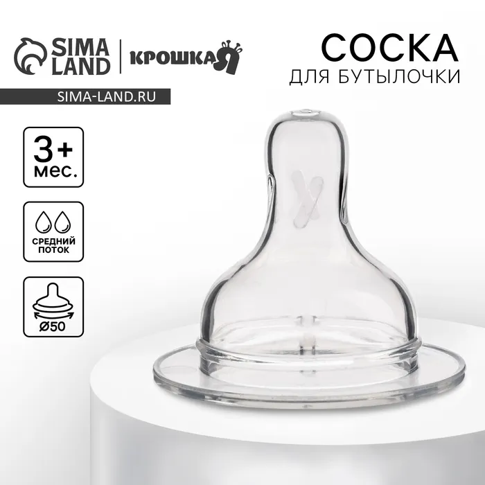 Соска на бутылочку Крошка Я Anti-colic, антиколиковая, от 3 мес., широкое горло Ø50 мм, средний поток — Характеристики