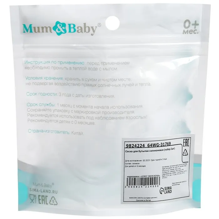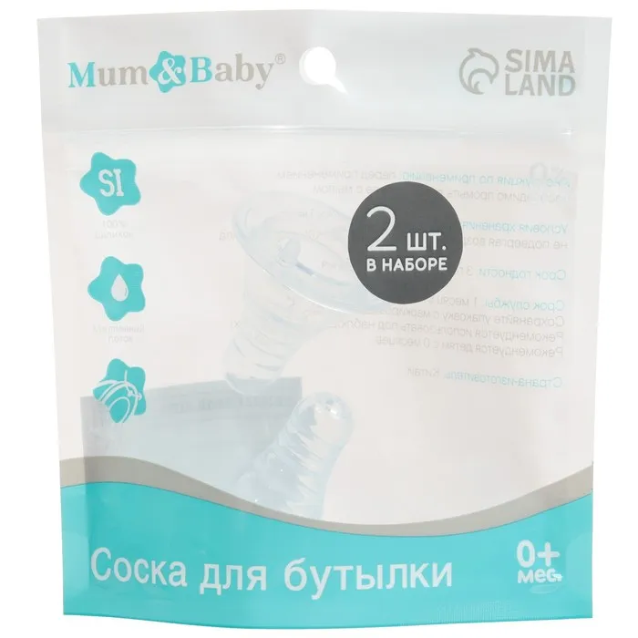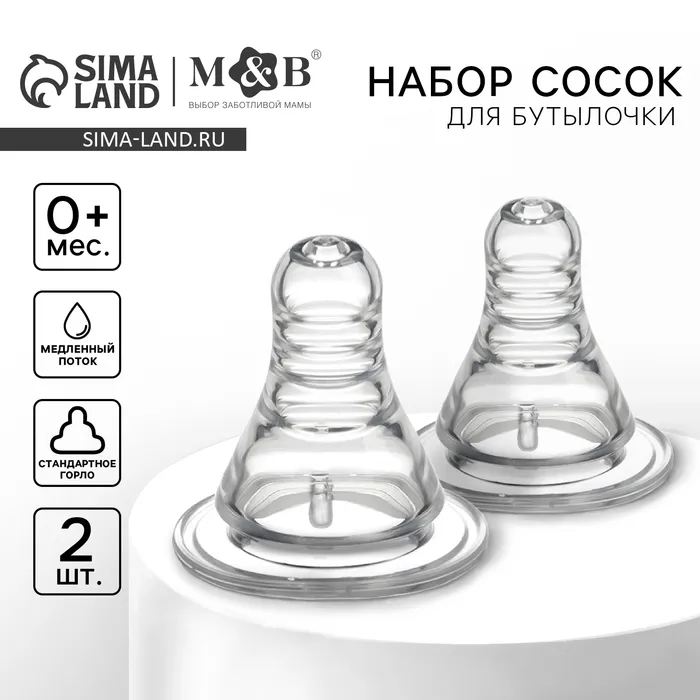 Соска на бутылочку M&B «Anti-colic», антиколиковая, классическое горло, от 0 мес., медленный поток, 2 шт. — Характеристики