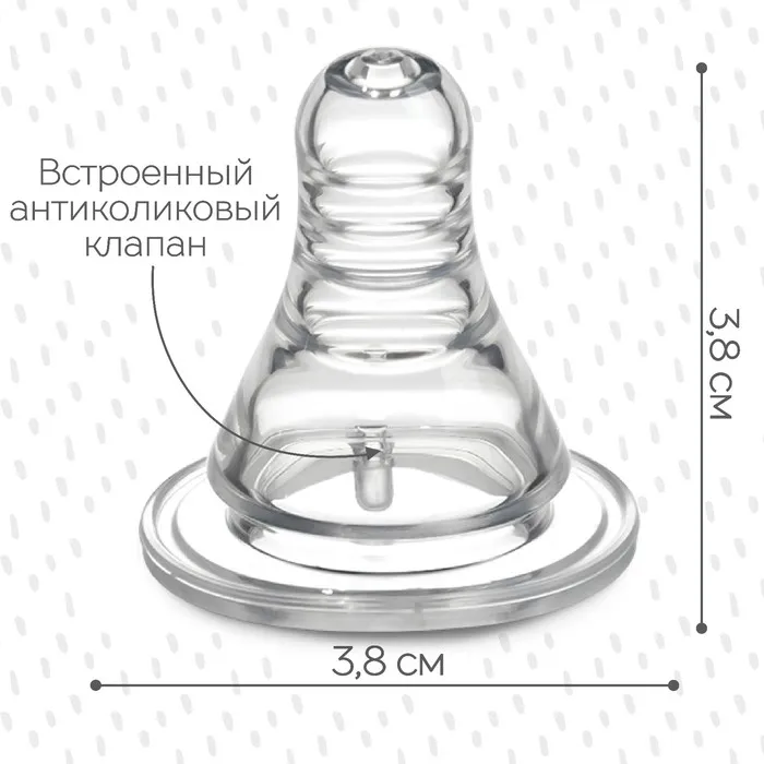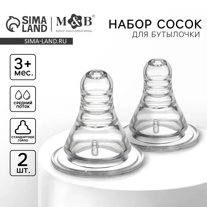 Соска на бутылочку M&B «Anti-colic», антиколиковая, классическое горло, от 3 мес., средний поток, 2 шт. — Характеристики