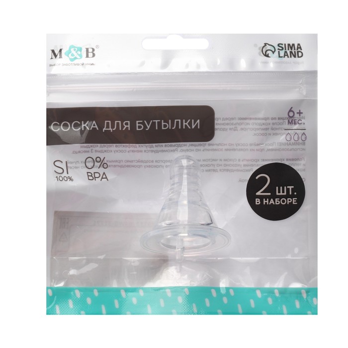 Соска на бутылочку M&B «Anti-colic», антиколиковая, классическое горло, от 6 мес., быстрый поток, 2 шт. — Характеристики