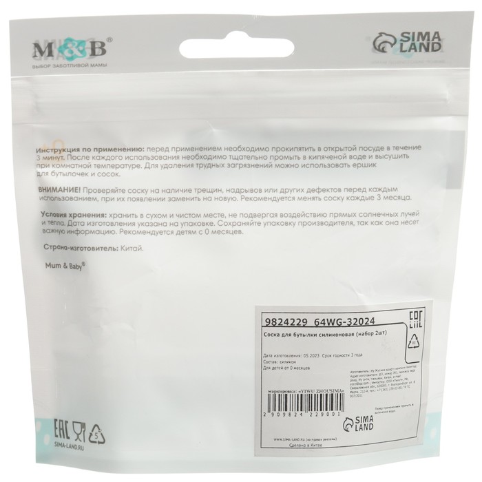Материал соски: Силикон