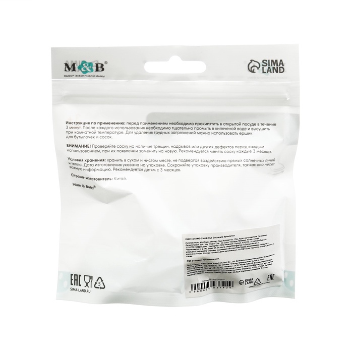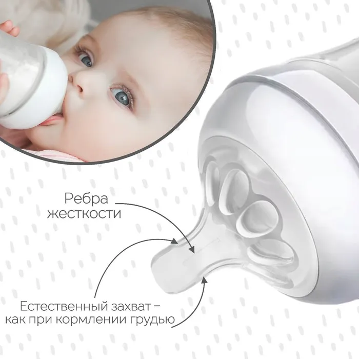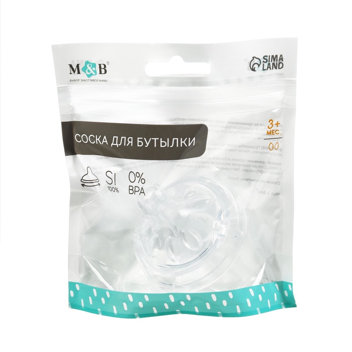 Соска на бутылочку M&B «Natural», антиколиковая, широкое горло Ø50 мм., от 3 мес., средний поток — Характеристики