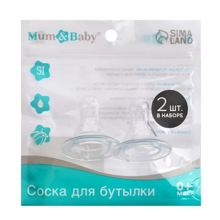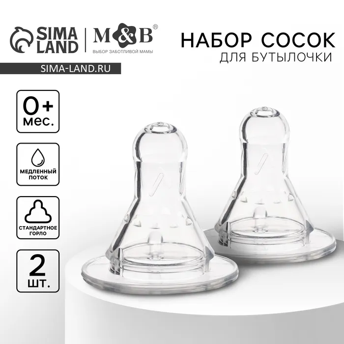 Соска на бутылочку M&B №1, классическое горло, от 0 мес., медленный поток, 2 шт. — Характеристики