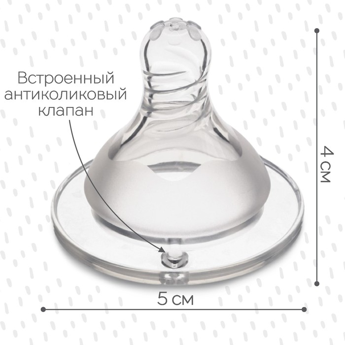 Соска на бутылочку M&B «Standard», антиколиковая, широкое горло Ø50 мм., от 0 мес., медленный поток — Характеристики