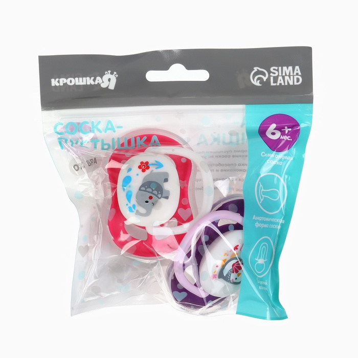 Соска - пустышка анатомическая Крошка Я «Для девочки» от 6 мес., 2 шт. + контейнер — Характеристики