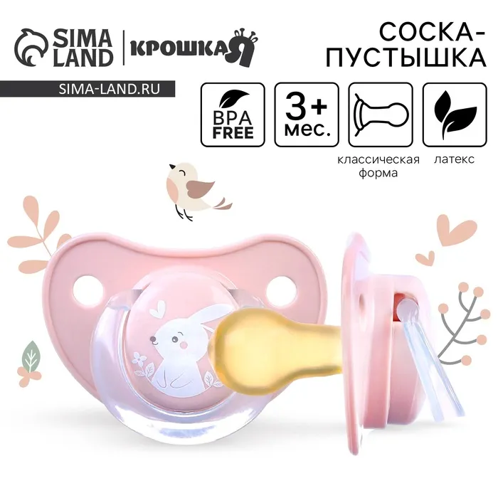 Соска - пустышка латексная классическая Крошка Я «Зайка», от 3 мес., розовый — Характеристики
