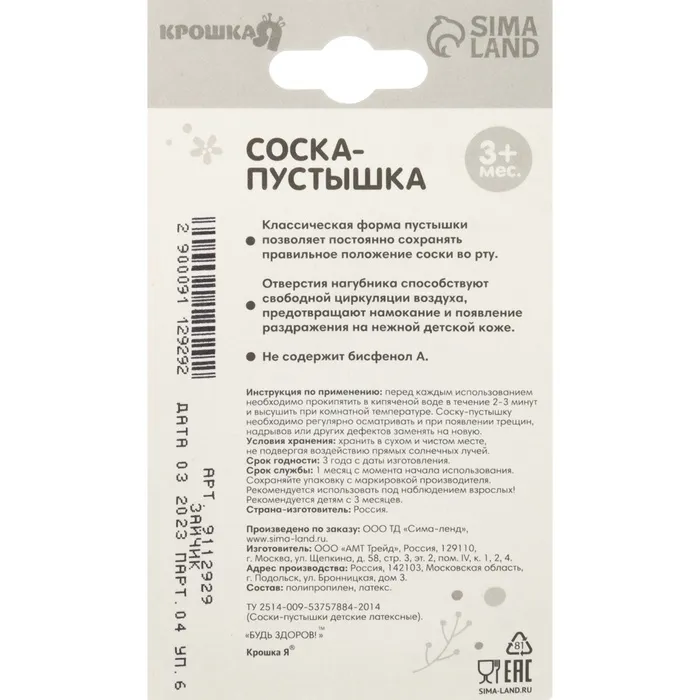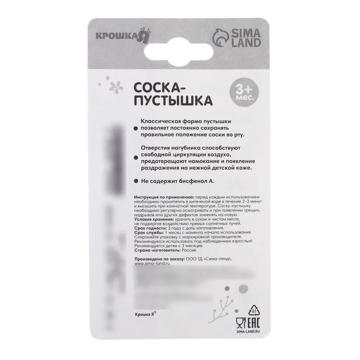 Составляющие набора: Пустышка