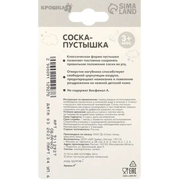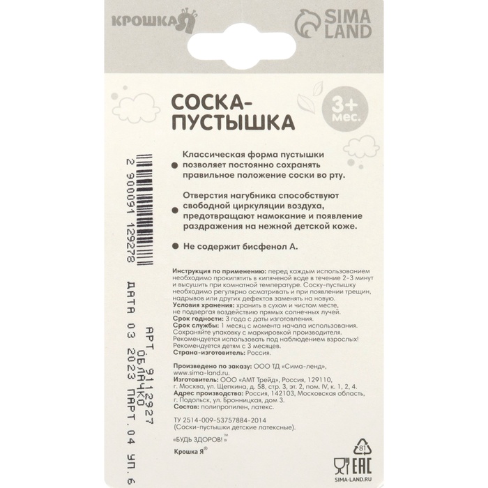 Классическая симметричная форма позволяет постоянно сохранять правильное положение соски во рту. Давать её малышу можно любой стороной.