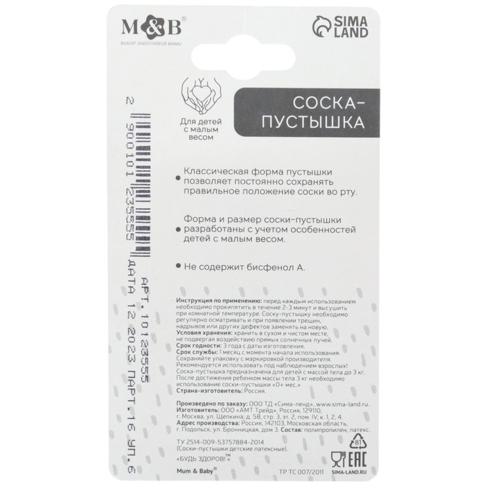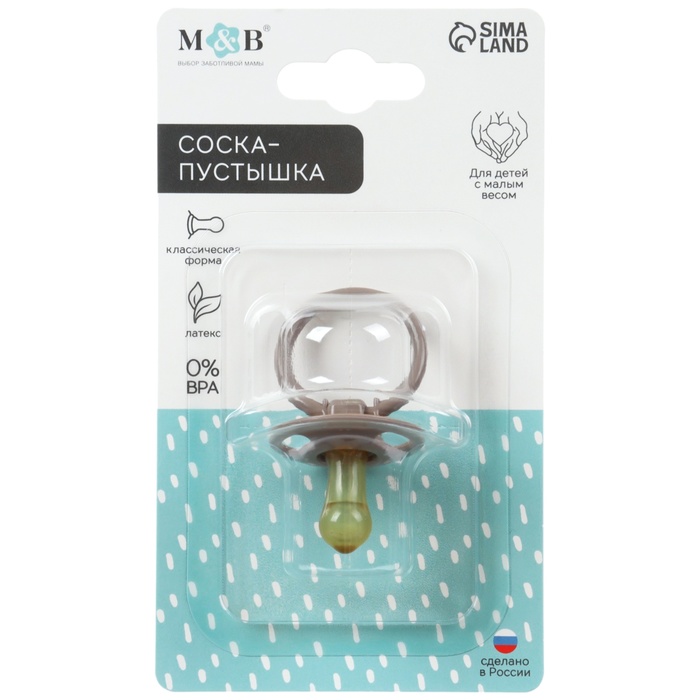 Соска - пустышка латексная классическая, от 0 мес., для детей с малым весом, цвет кофе с молоком — Характеристики
