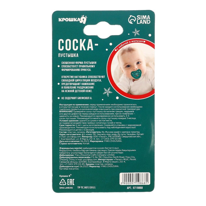 Соска - пустышка «Наше чудо», ортодонтическая, силикон, от 6 мес., Крошка Я — Характеристики