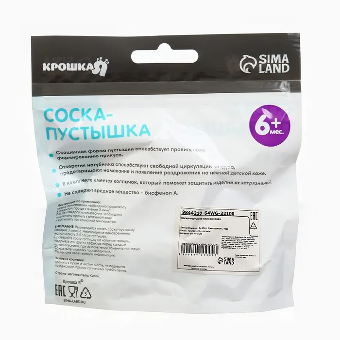 Соска - пустышка ортодонтическая Крошка Я «Птички», от 6 мес., зеленый — Характеристики