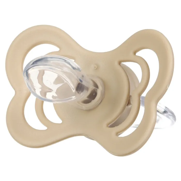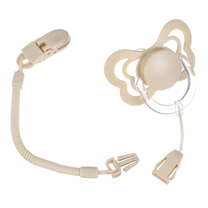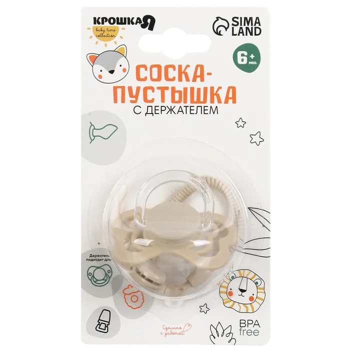 Соска - пустышка ортодонтическая Крошка Я, силикон, +6 мес., с держателем, бежевый — Характеристики