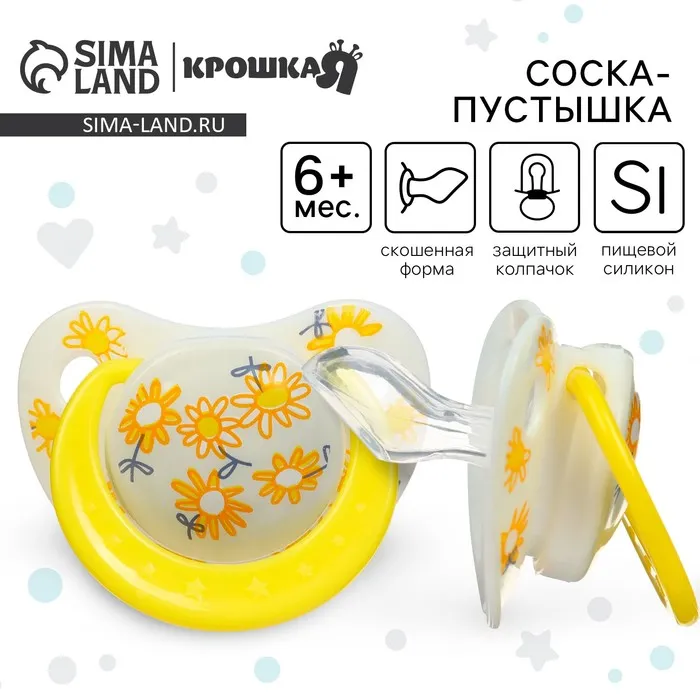 Соска - пустышка ортодонтическая Крошка Я «Цветы», от 6 мес., желтый — Характеристики