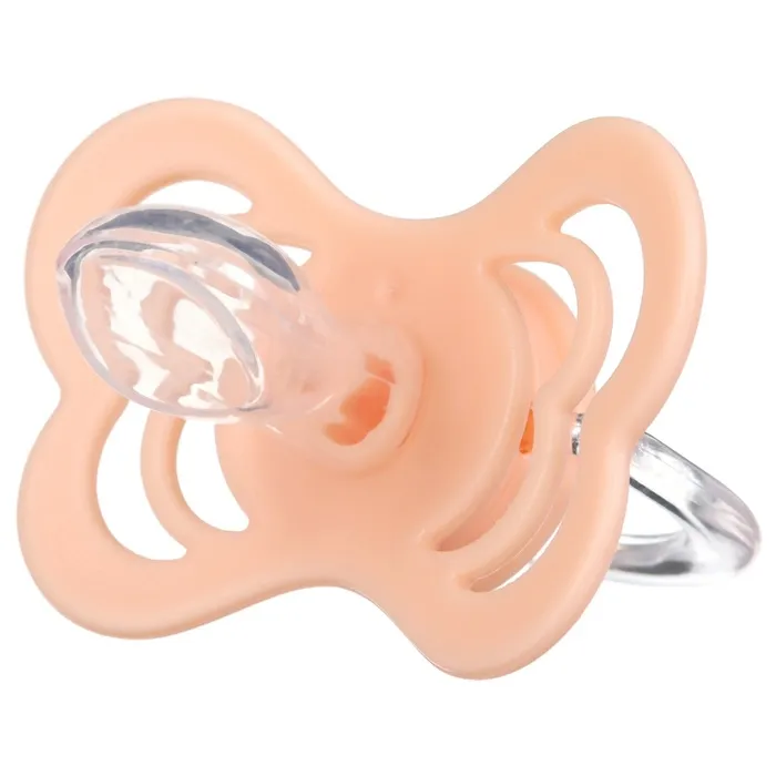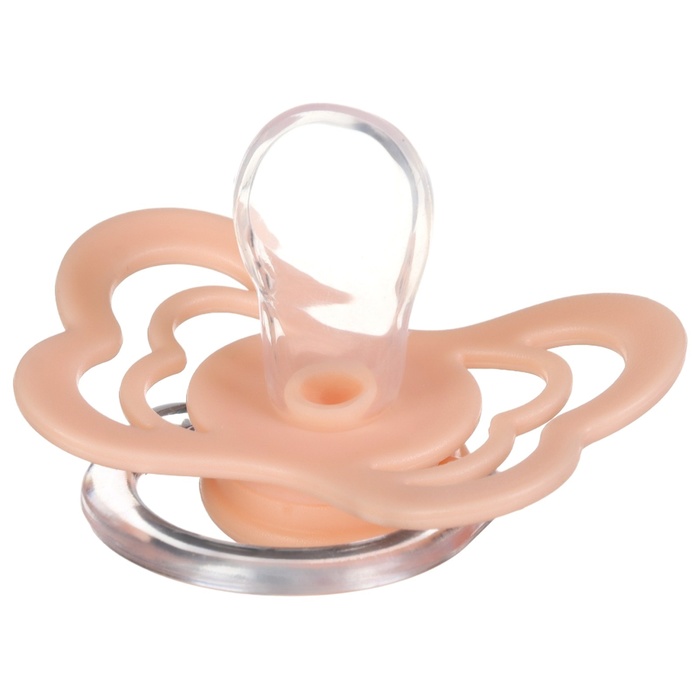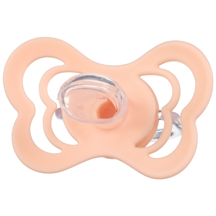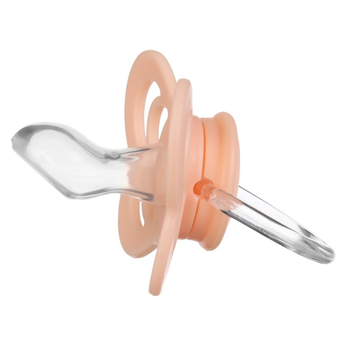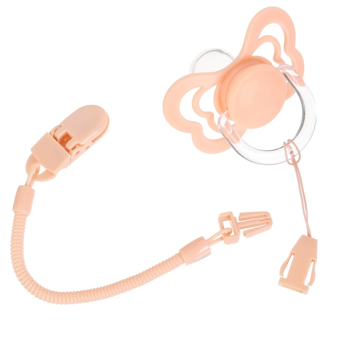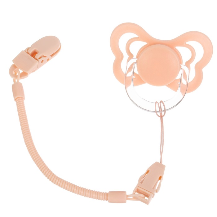 Соска - пустышка ортодонтическая M&B, силикон, от 6 мес., с держателем, розовый — Характеристики