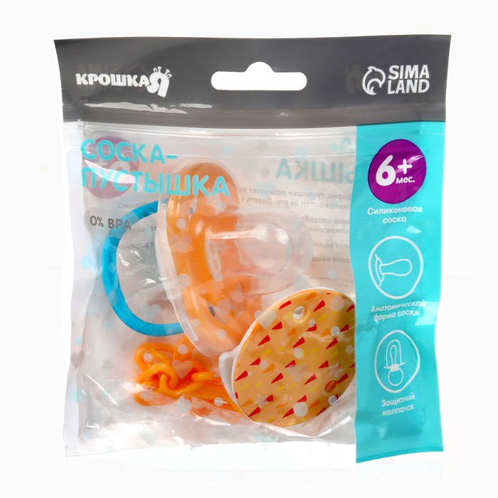 Соска - пустышка с держателем Крошка Я «Черепаха», анатомическая от 6 мес, желтый — Характеристики