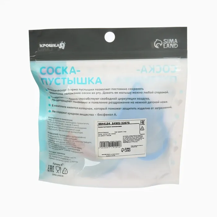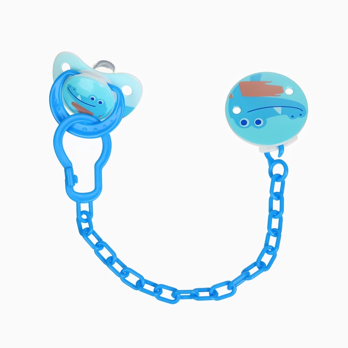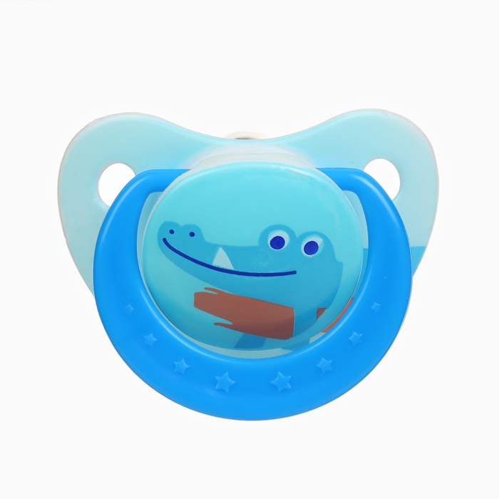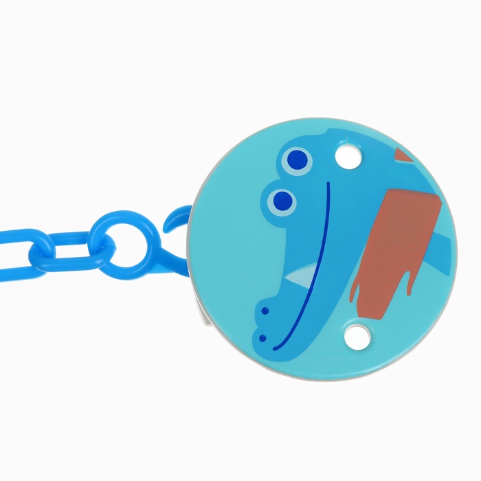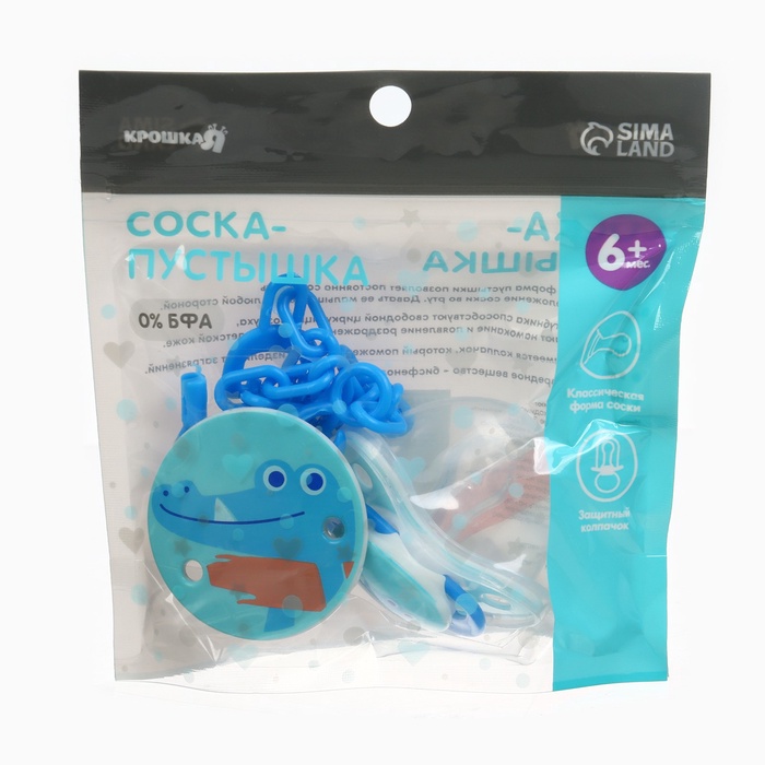 Соска - пустышка с держателем Крошка Я «Крокодил», классическая, от 6 мес, синий — Характеристики