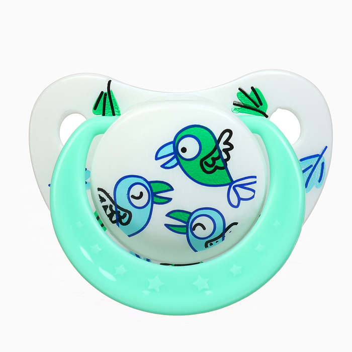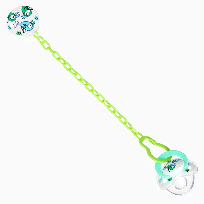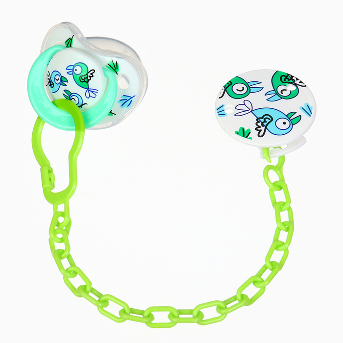 Соска - пустышка с держателем Крошка Я «Птички», ортодонтическая, от 6 мес, зеленый