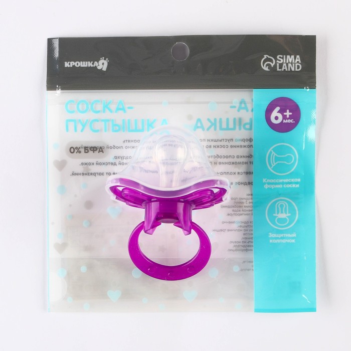 Соска - пустышка силиконовая классическая Крошка Я «Бабочка», от 6 мес., с колпачком, фиолетовый — Характеристики