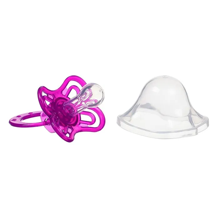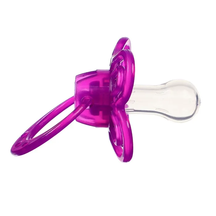 Соска-пустышка предназначена для детей с 6 мес. Форма нагубника с симметрично расположенными отверстиями обеспечивает свободную циркуляцию воздуха для предотвражения появления опрелостей.