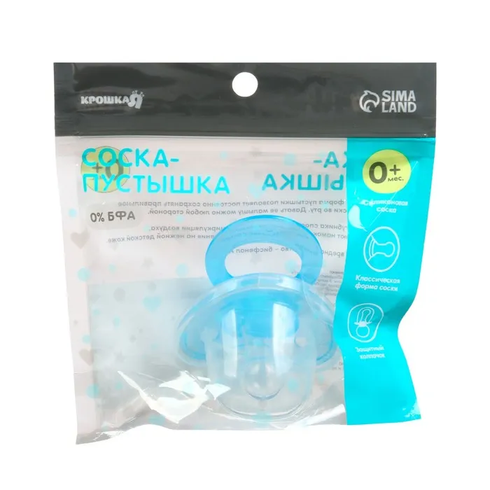 Соска - пустышка силиконовая классическая Крошка Я, от 0 мес., с колпачком, голубой — Характеристики