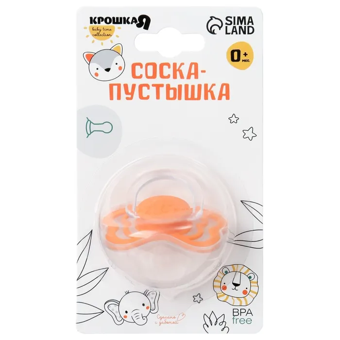 Соска - пустышка силиконовая классическая Крошка Я, от 0 мес., с колпачком, оранжевый — Характеристики