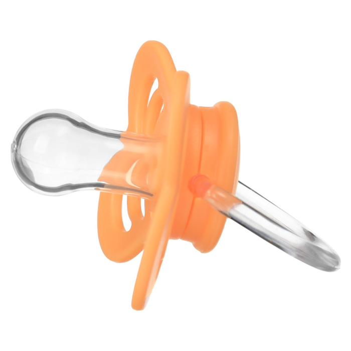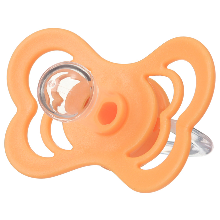 Соска пустышки сделала из безопасного силикона и имеет специальные вентиляционные отверстия, которые улучшают циркуляцию воздуха, не раздражают кожу малыша и не оставляют следов и опрелостей. Создана для удовлетворения естественного сосательного рефлекса малышей.