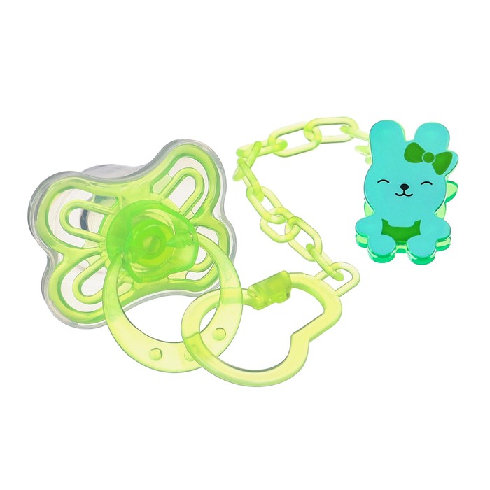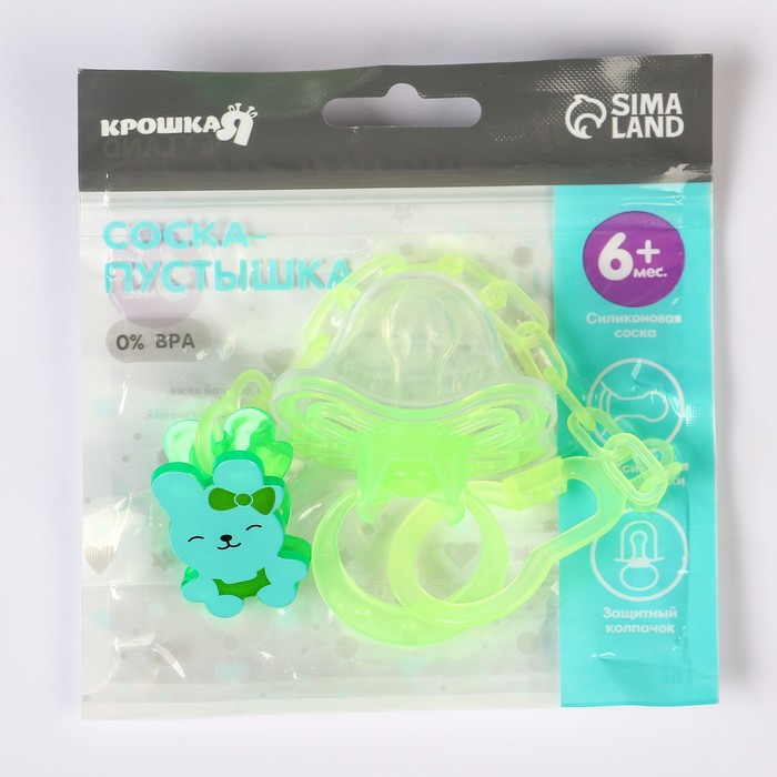 Соска - пустышка силиконовая классическая Крошка Я «Зайка», от 6 мес., с колпачком, держатель, зеленый