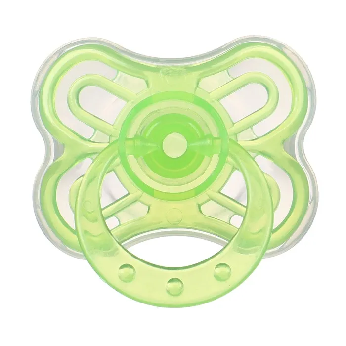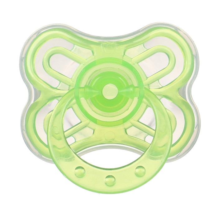 Соска-пустышка предназначена для детей с 6 мес. Форма нагубника с симметрично расположенными отверстиями обеспечивает свободную циркуляцию воздуха для предотвражения появления опрелостей.