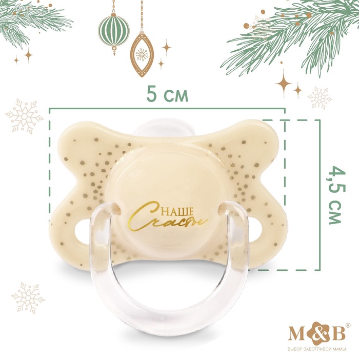 Соска - пустышка силиконовая новогодняя M&B «Счастье», ортодонтическая, от 6 мес., в контейнере — Характеристики