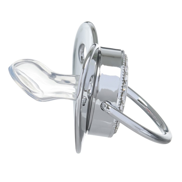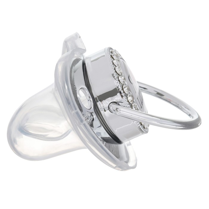 Роскошная пустышка со стразами Соска со стразами ортодонтической формы скошенная. Современный и модный дизайн пустышки со стразами не оставит равнодушным никого из взрослых и детей. Очень стильная и модная детская соска повторяет форму соска материнской груди во время кормления. Даже детки с зубами могут пользоваться ей, ведь она очень плотная.