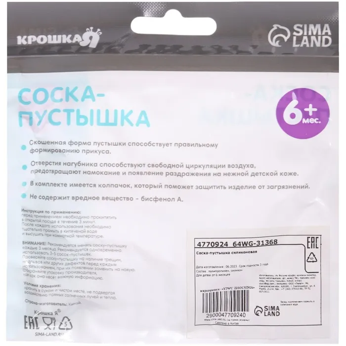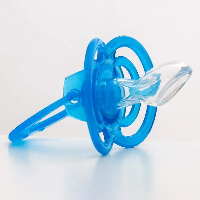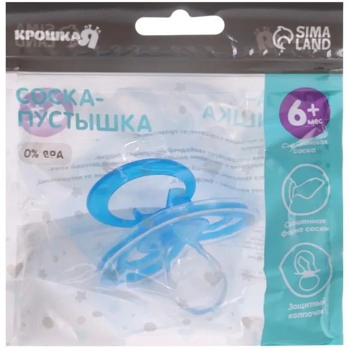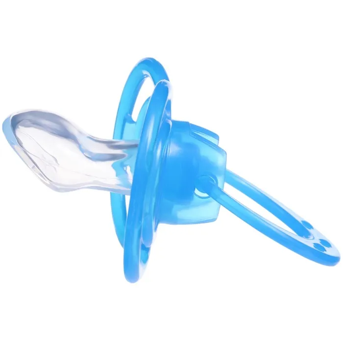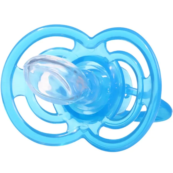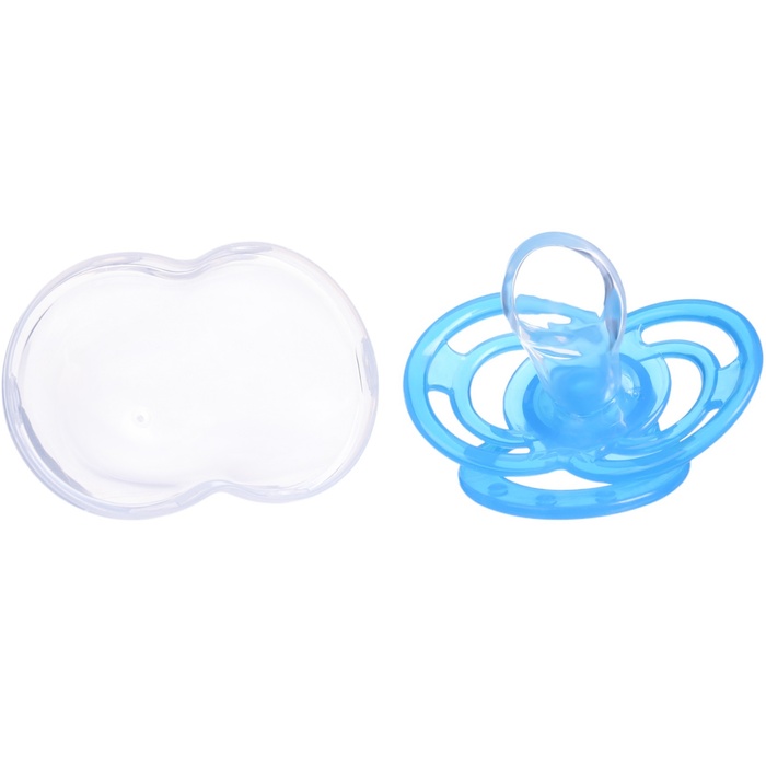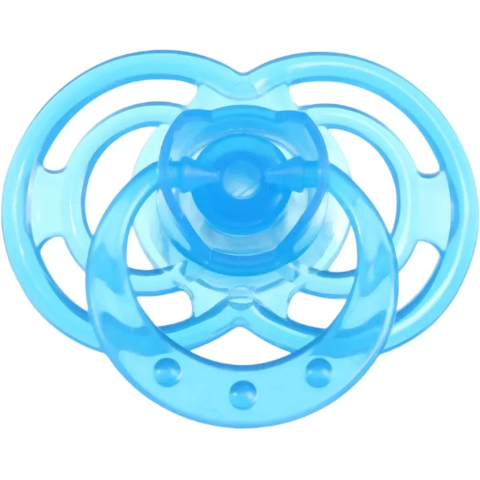 Соска пустышки силиконовая и имеет анатомическую форму диска, специальные вентиляционные отверстия на пустышке улучшают циркуляцию воздуха не раздражают кожу малыша и не оставляют следов и опрелостей. Создана для удовлетворения естественного сосательного рефлекса малышей. Пустышка анатомической формы имеет немного сплюснутый сосок, благодаря чему прилегает к языку.