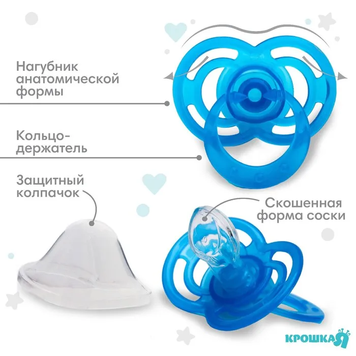 Соска - пустышка силиконовая ортодонтическая Крошка Я «Бантик», от 3 мес., с колпачком, голубой — Характеристики