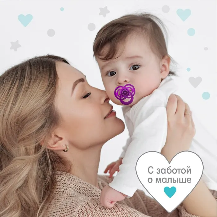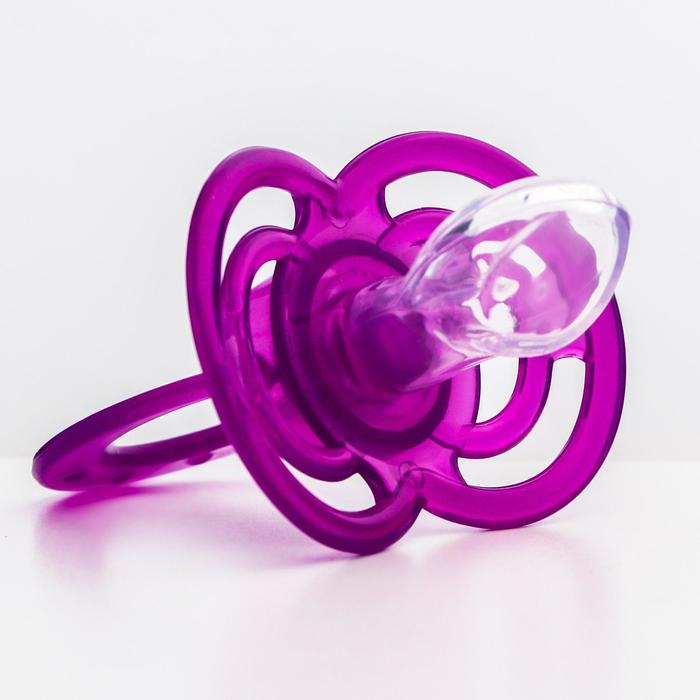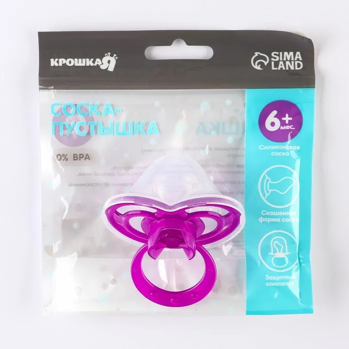 Соска - пустышка силиконовая ортодонтическая Крошка Я «Бантик», от 6 мес., с колпачком, фиолетовый — Характеристики