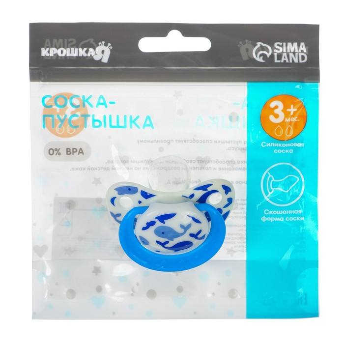 Соска - пустышка силиконовая ортодонтическая Крошка Я «Кит», от 3 мес., голубой