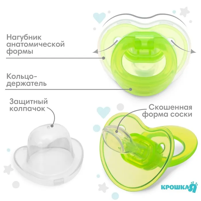 Соска - пустышка силиконовая ортодонтическая Крошка Я, от 0 мес., зеленый — Характеристики
