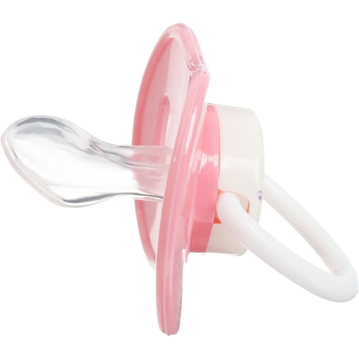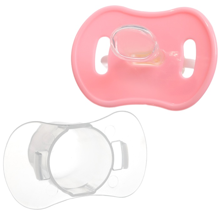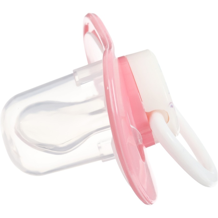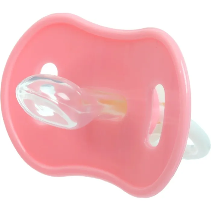 Соска пустышки силиконовая и имеет анатомическую форму диска, специальные вентиляционные отверстия на пустышке улучшают циркуляцию воздуха не раздражают кожу малыша и не оставляют следов и опрелостей. Создана для удовлетворения естественного сосательного рефлекса малышей. Пустышка анатомической формы имеет немного сплюснутый сосок, благодаря чему прилегает к языку.