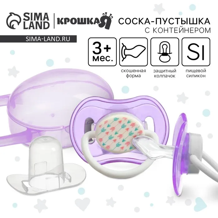 Соска - пустышка силиконовая ортодонтическая Крошка Я, от 3 мес., с колпачком, в контейнере, фиолетовый — Характеристики