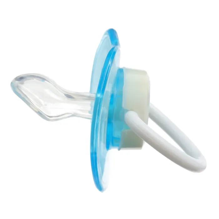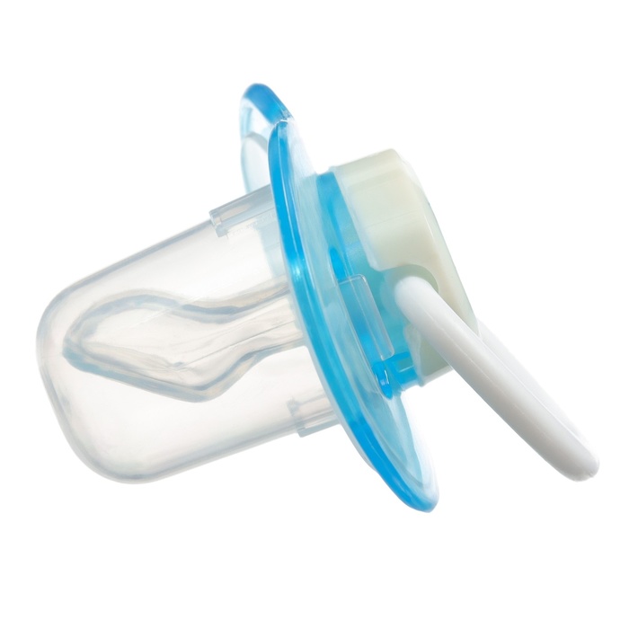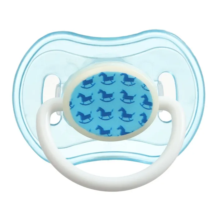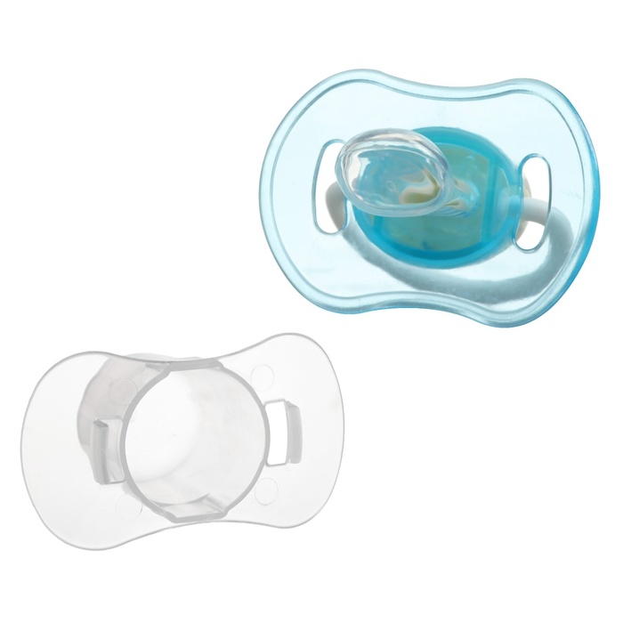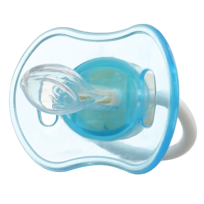 Соска пустышки силиконовая и имеет анатомическую форму, специальные вентиляционные отверстия на пустышке улучшают циркуляцию воздуха не раздражают кожу малыша и не оставляют следов и опрелостей. Создана для удовлетворения естественного сосательного рефлекса малышей. Пустышка анатомической формы имеет немного сплюснутый сосок, благодаря чему прилегает к языку.