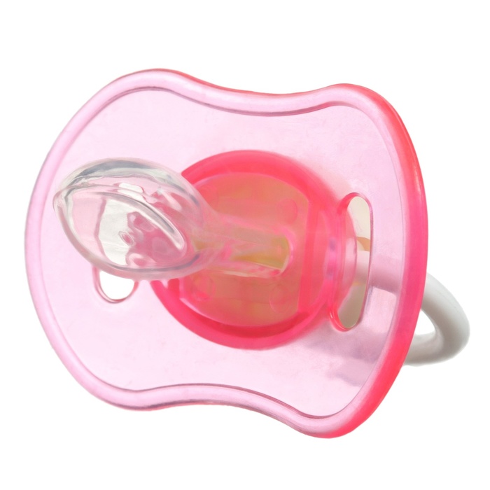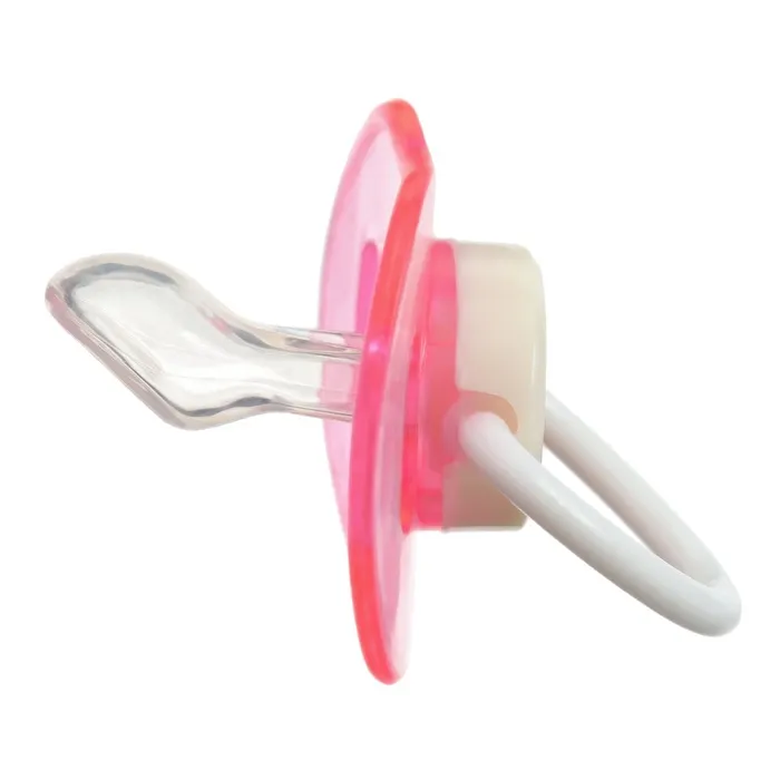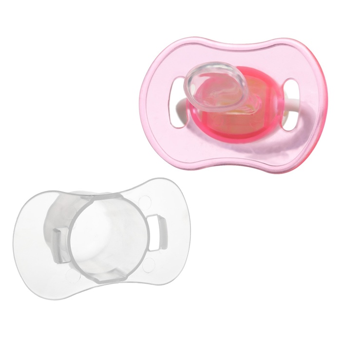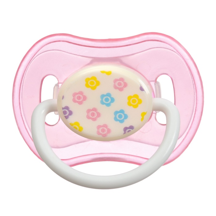 Соска пустышки силиконовая и имеет анатомическую форму, специальные вентиляционные отверстия на пустышке улучшают циркуляцию воздуха не раздражают кожу малыша и не оставляют следов и опрелостей. Создана для удовлетворения естественного сосательного рефлекса малышей. Пустышка анатомической формы имеет немного сплюснутый сосок, благодаря чему прилегает к языку.