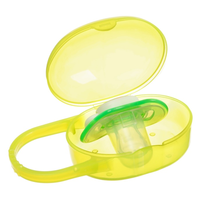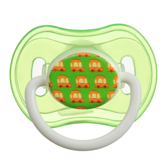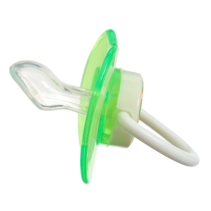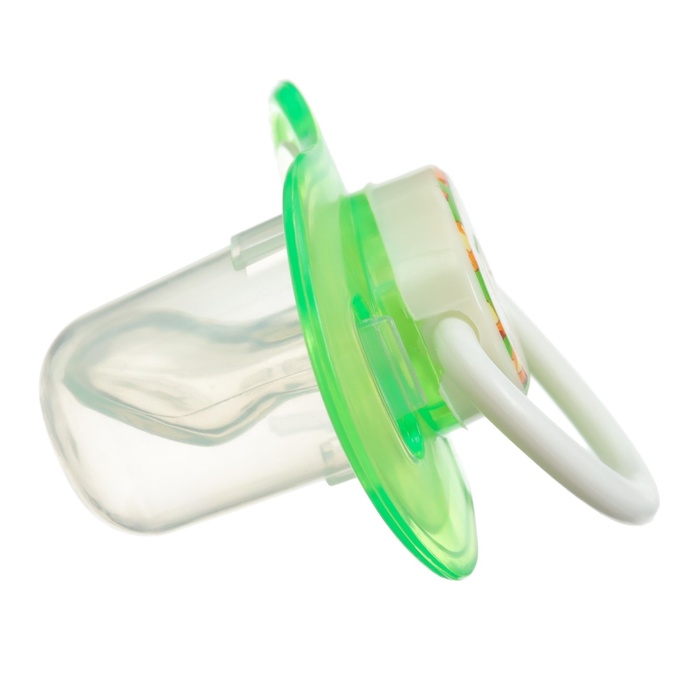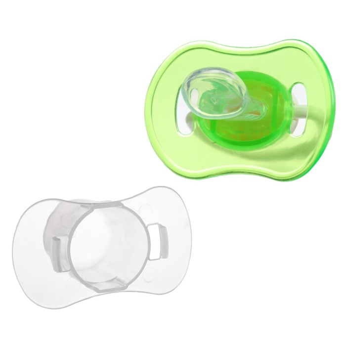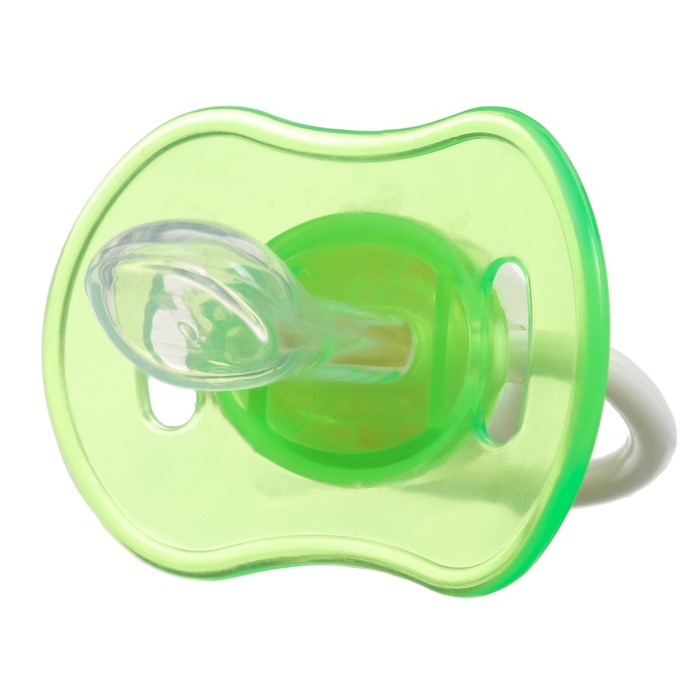 Соска пустышки силиконовая и имеет анатомическую форму, специальные вентиляционные отверстия на пустышке улучшают циркуляцию воздуха не раздражают кожу малыша и не оставляют следов и опрелостей. Создана для удовлетворения естественного сосательного рефлекса малышей. Пустышка анатомической формы имеет немного сплюснутый сосок, благодаря чему прилегает к языку.