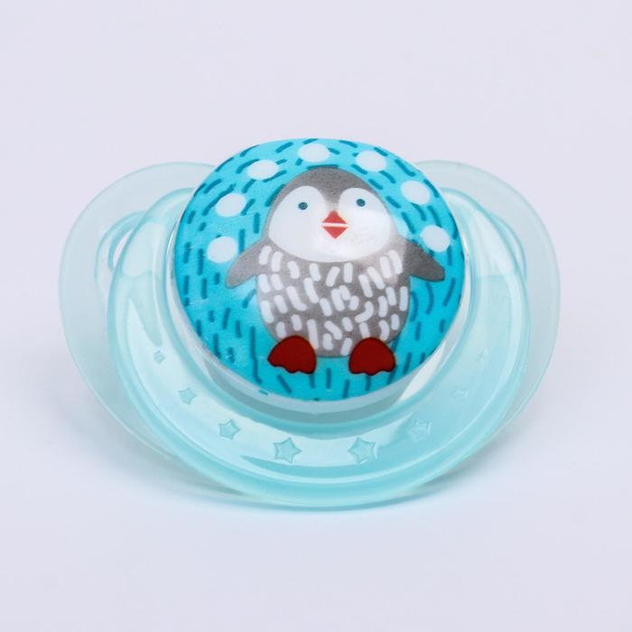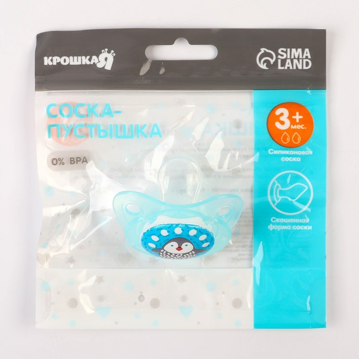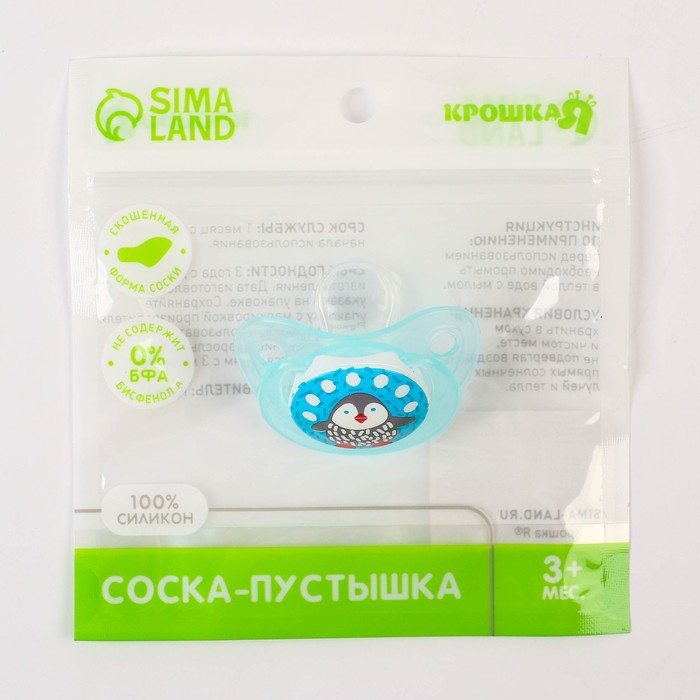Соска - пустышка силиконовая ортодонтическая Крошка Я «Пигвинчик», от 3 мес., голубой