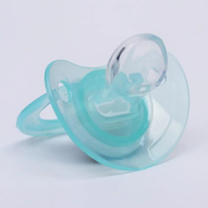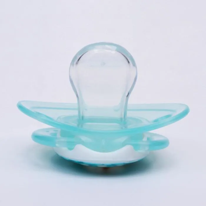 Соска пустышки силиконовая и имеет анатомическую форму диска, специальные вентиляционные отверстия на пустышке улучшают циркуляцию воздуха не раздражают кожу малыша и не оставляют следов и опрелостей. Создана для удовлетворения естественного сосательного рефлекса малышей. Пустышка анатомической формы имеет немного сплюснутый сосок, благодаря чему прилегает к языку.