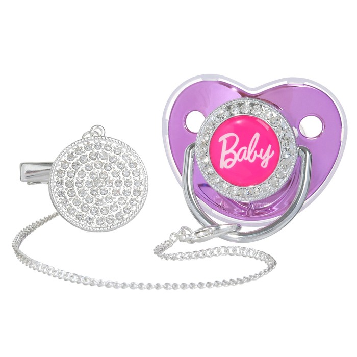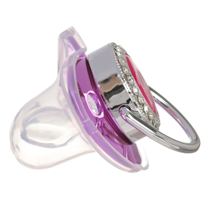 Роскошная пустышка со стразами Соска со стразами ортодонтической формы скошенная. Современный и модный дизайн пустышки со стразами не оставит равнодушным никого из взрослых и детей. Очень стильная и модная детская соска повторяет форму соска материнской груди во время кормления. Даже детки с зубами могут пользоваться ей, ведь она очень плотная.